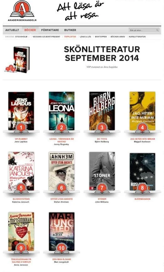 LEONA, number 2 at Sweden's lagest book chain Akademibokhandeln's toplist over sales in September 2014.