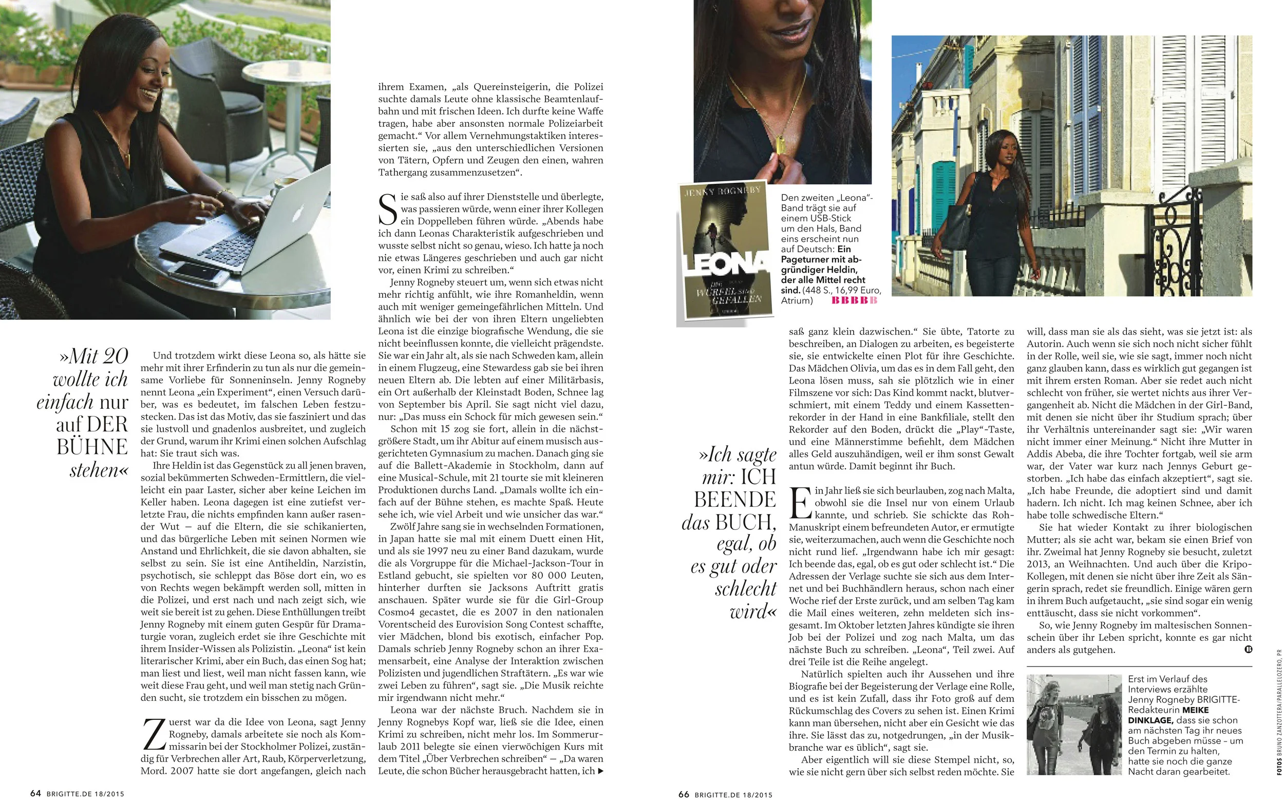 Germain's largest women's magazine BRIGITTE, with an estimated readership of 3.6 million, flew down to Malta for an interview with Jenny. In this four pages portrait you get to know more about Jenny's childhood, her writing, her work as a criminal investigator and her book, LEONA.